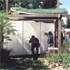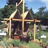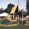 Landmark Landscape's owners and designers also own Free Sprit Nursery. In 99', Y2K and 01', Free Spirit Nursery with their friends Bluestem Nursery from Christina Lake, exhibited at the Van Dusen Flower and Garden Show, North America's largest outdoor garden show. Each year we won the special award, "Most Innovative" (our favorite) as well as silver and gold and a treasured citation from the North American Horticultural Society. We built a structure that had a different roof put on it each year. The structure stood on top of the lawn, had no nails or screws, just interlocking joints and pegs. It did no damage to the Botanical Garden. The exhibits brought us good advertizing and one year, when we have some more time, we will be delighted to exhibit again! Meanwhile - thanks for the memories...www.bluestem.ca Same structure different roof ...Click on the images tor a larger view. |