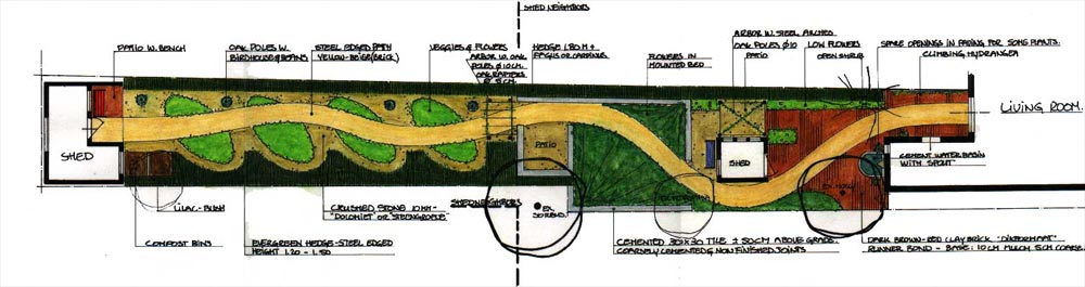 LANDMARK LANDSCAPE CORPORATION Another example of our landscape design for one long, narrow garden Return to Landmark Landscape